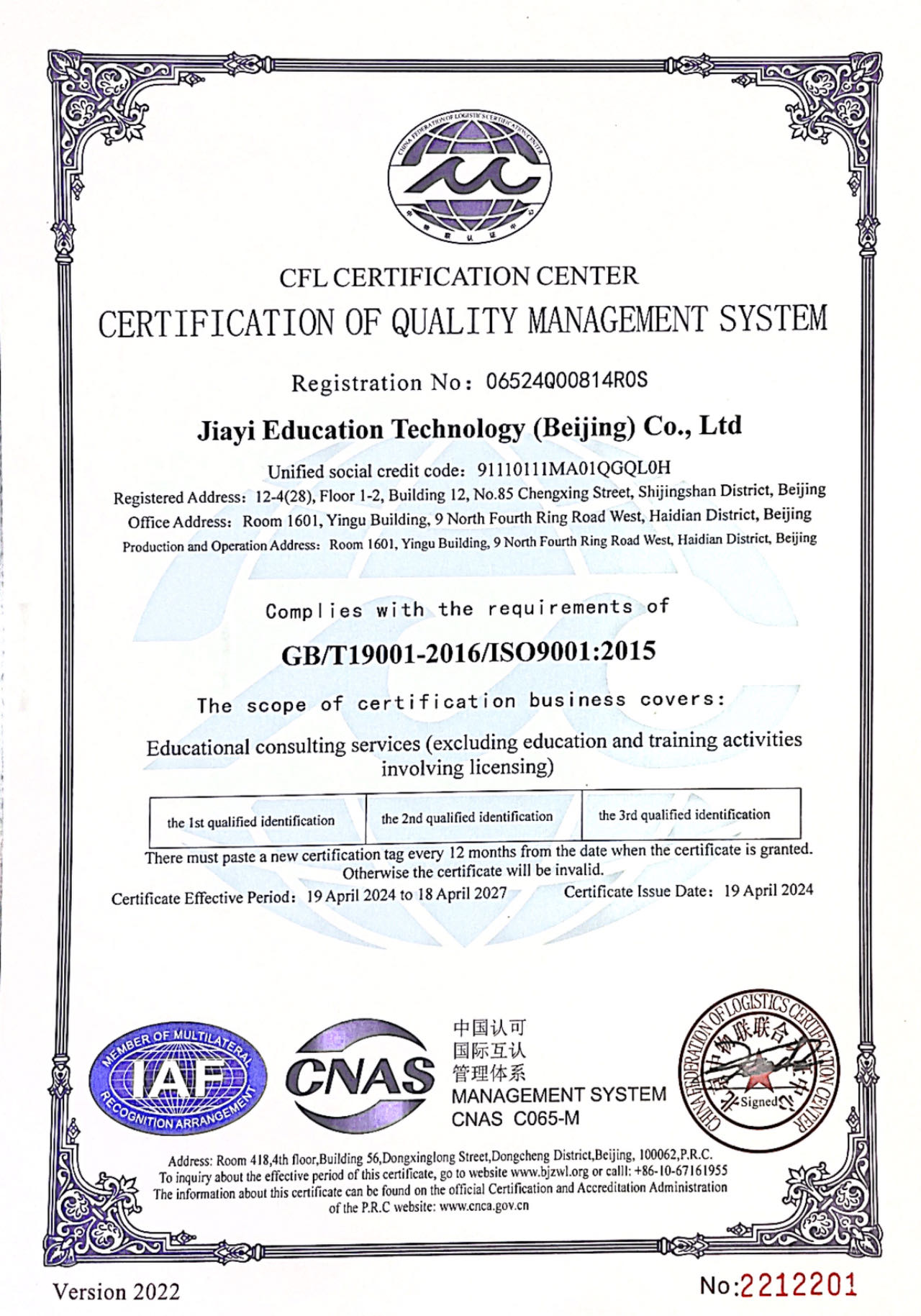 ISO9001质量管理体系认证英文版