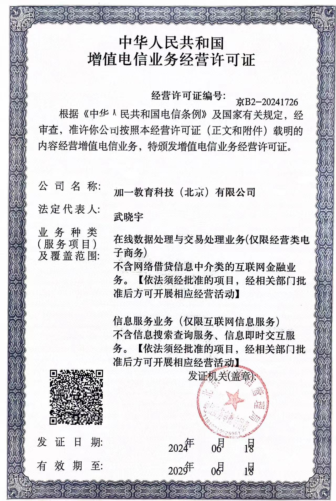 增值电信业务经营许可证